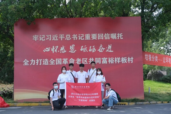 浙江紮實推進高質量發展建設共同富裕示範區,努力成為新時代全面展示中國特色社會主義制度優越性的重要窗口,為了讓青年學生自覺成為共同富裕和現代化的先行探路者,更深入更清晰地了解共同富裕的科學内涵,6766澳门联合网站官网平台機械學院組建暑期大學生“探尋共同富裕示範村密碼”—“共富前哨”實踐隊,分赴“浙東紅村”——橫坎頭村、“浙江省善治示範村”——上城埭村、“中國生态第一村”——滕頭村實地開展共同富裕主題調研活動。